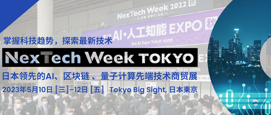2023/04/27加入您的商務(wù)行程—邀請(qǐng)參訪(fǎng)日本先端技術(shù)盛宴?。?月10-12日@東京)文末掃碼申請(qǐng)免費(fèi)觀(guān)眾入場(chǎng)券▋國(guó)內(nèi)外300家展商云集 —掌握科技新趨勢(shì)NexTech Week Tokyo是日本領(lǐng)先的AI人工智能、區(qū)塊鏈、量子計(jì)算先端技術(shù)商貿(mào)展。今春的展會(huì)預(yù)計(jì)匯集300家展商共襄盛舉。其中包含日本知名老牌企業(yè).... -